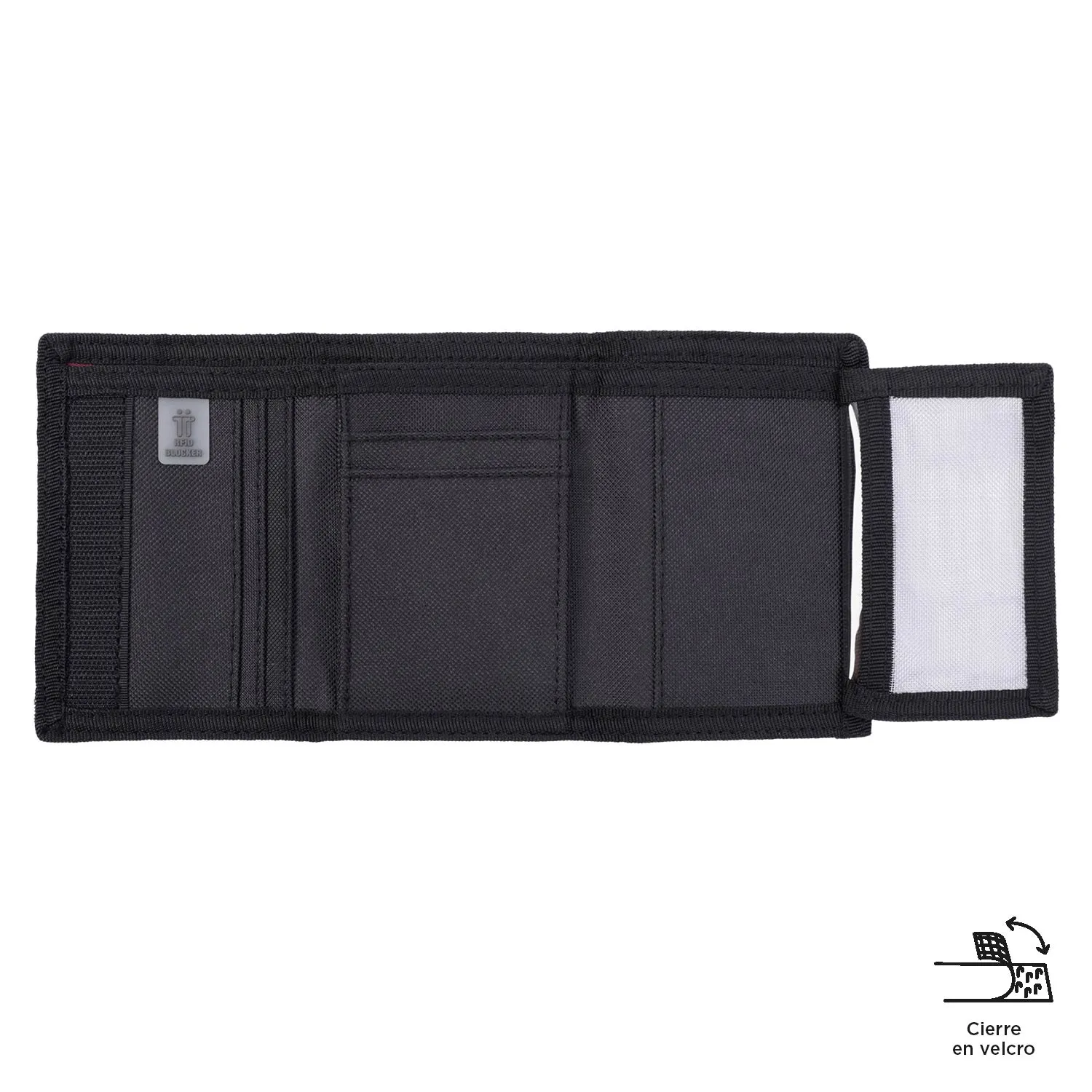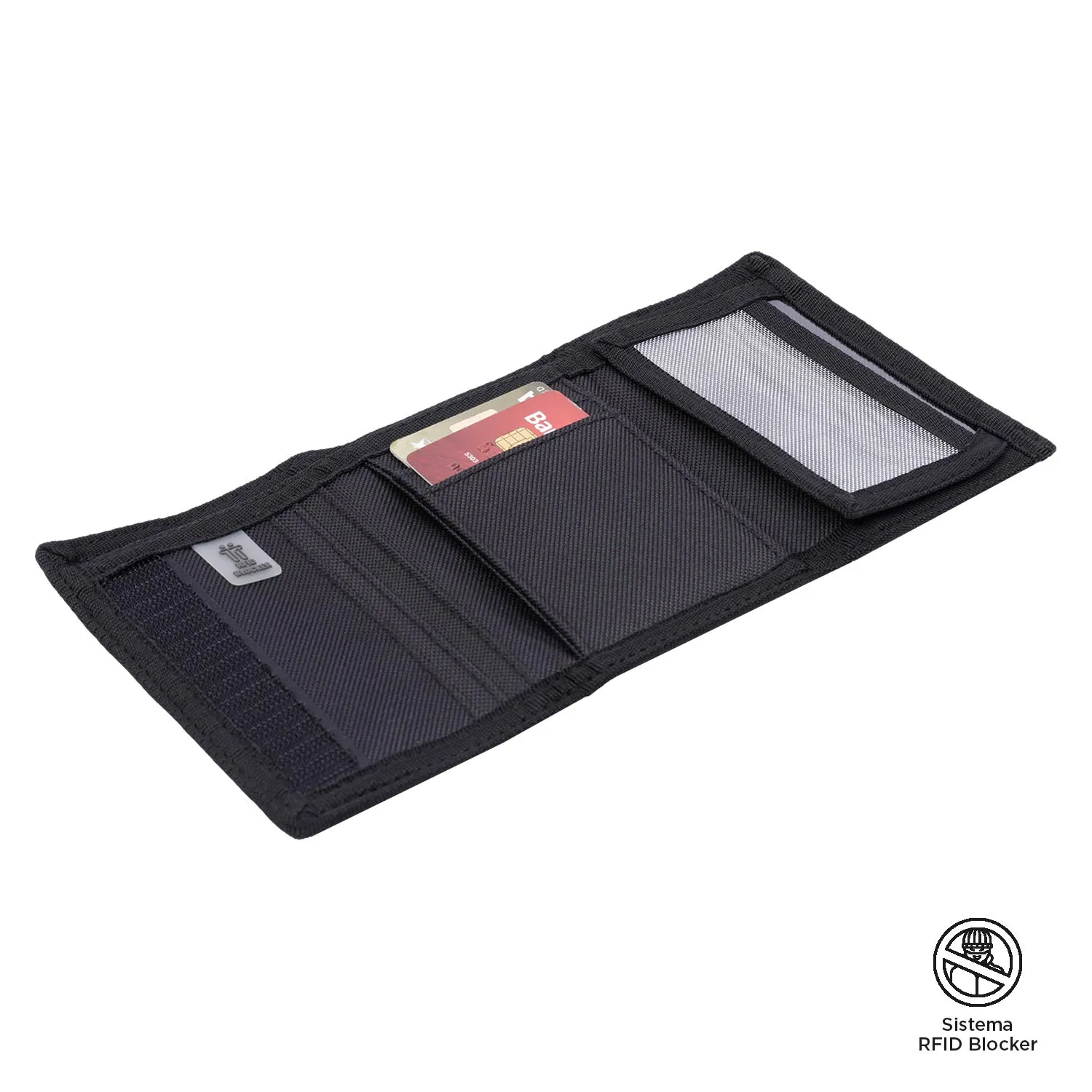 Take your documents and money with you wherever you go with your new medium men’s wallet, Bacalao. It is made of 100% polyester, and its style is three bodies. Three bodies. Compact and perfect. It features three main sections that fold in on themselves, some larger than the others with slots for cards and cash. RFID Blocker system to protect your cards and personal data from theft and impersonation through unauthorized scanning. This system prevents the cards that today work with this small label that is normally used to activate with the contact, from being cloned, and does so through a cancellation layer of the external scan that includes the product