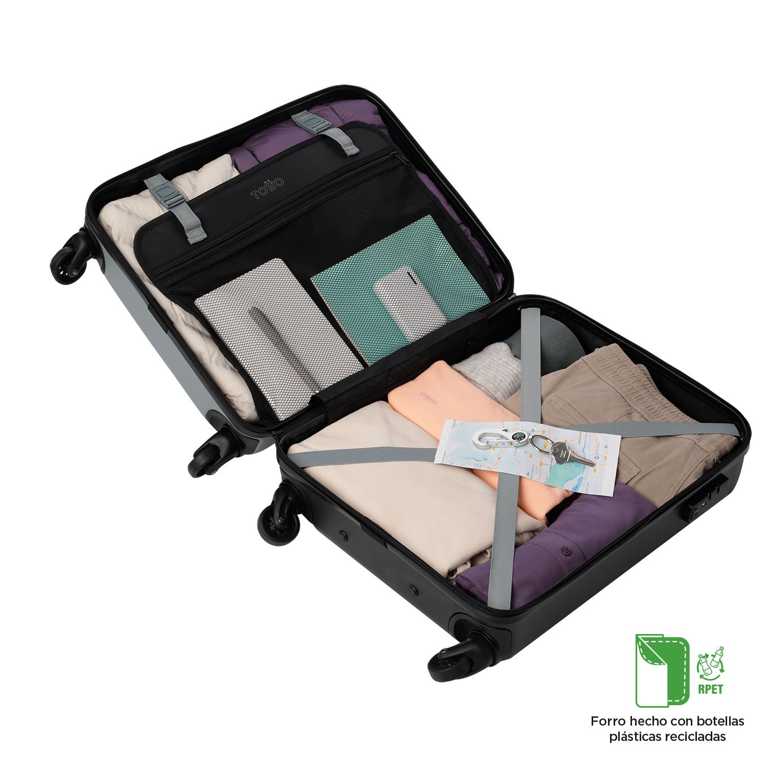 Take your travels to the next level with this suitcase collection! Each piece offers enhanced security with a TSA-approved lock, accepted by all airport authorities. Featuring 360° spinner wheels for smooth movement and a divider with an internal organizer, packing becomes quick and efficient. The suitcases are made from durable ABS and polycarbonate, with a distinctive textured finish for added style. Before you travel, be sure to check your airline’s weight and size requirements.