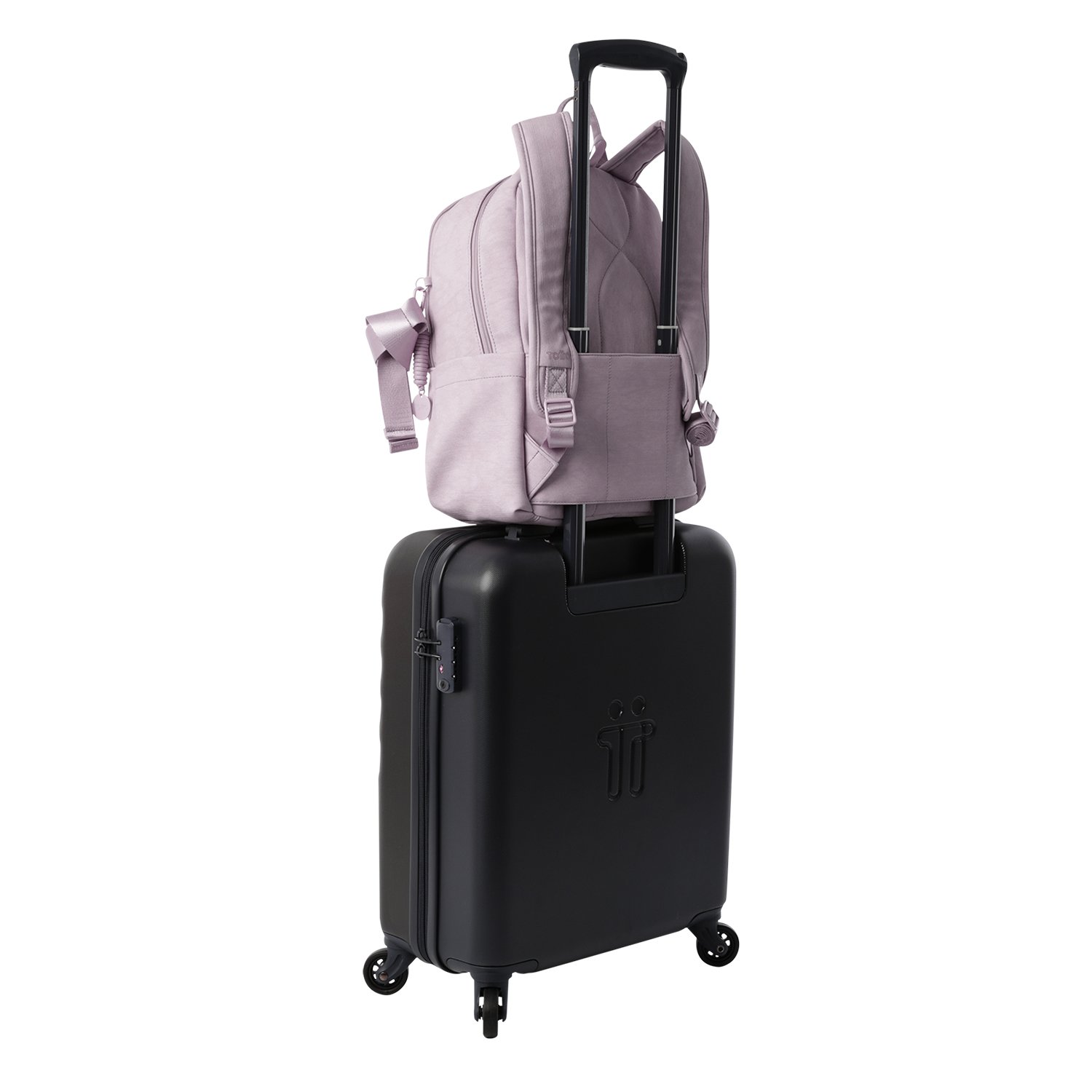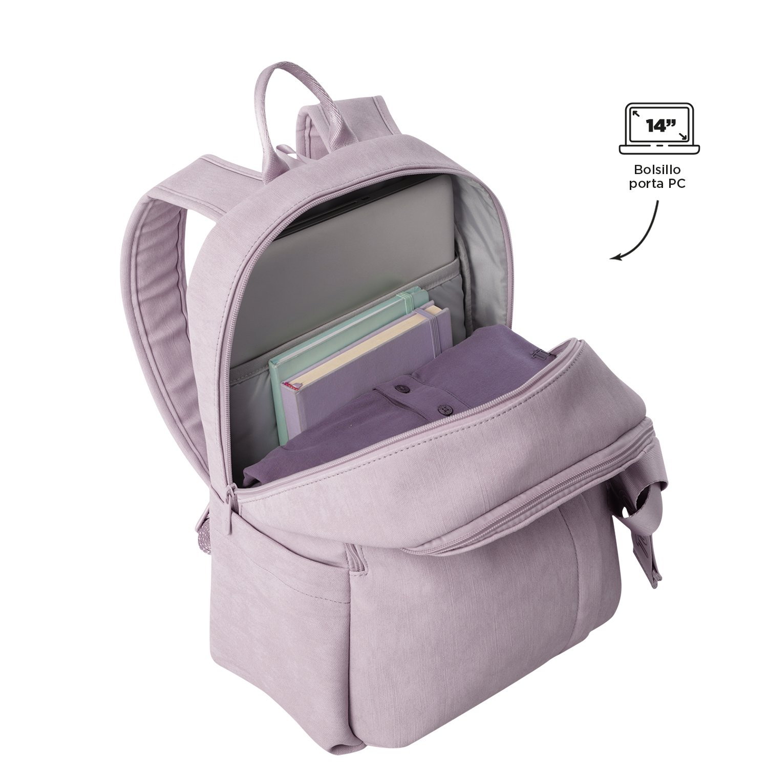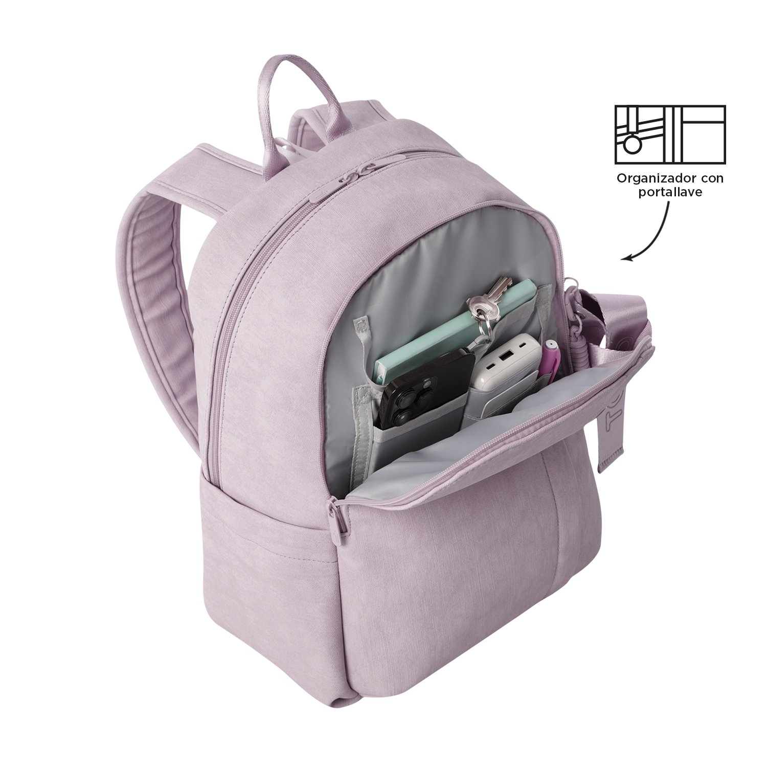 Functionality and style in one backpack! The Bow offers a modern look with a textured PVC finish and compartments designed for everyday use. A padded 14-inch laptop pocket keeps your device secure, while the built-in organizer with key holder and hidden pocket make storage easy. It also features a trolley sleeve and a bottle holder, bringing practicality to every outing. Take it with you and stand out wherever you go!