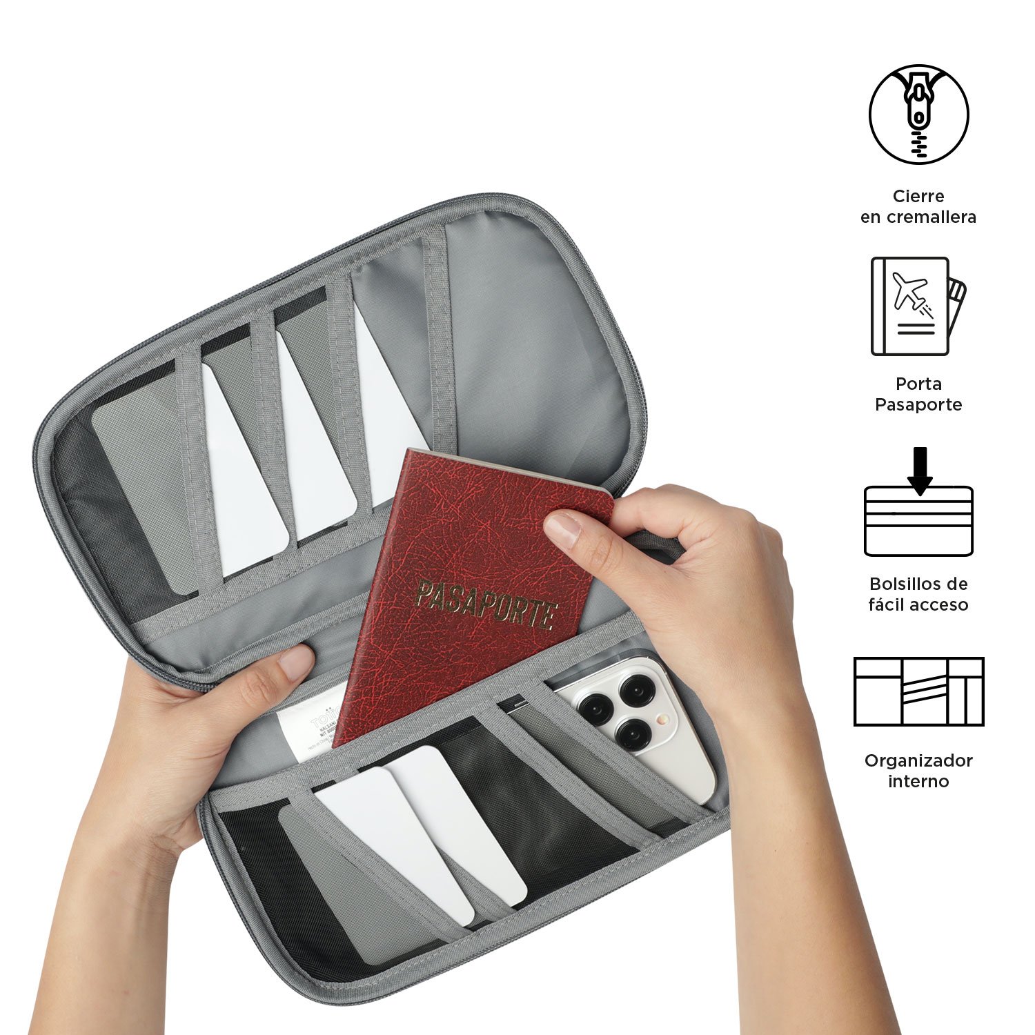 The Complyt Passport Holder offers security with its zipper closure and organization with its internal compartments for passports, boarding passes, cards and money. With a handy handle for comfortable carrying, it’s made of a durable and easy-to-clean material, with colors that match the Travel palette