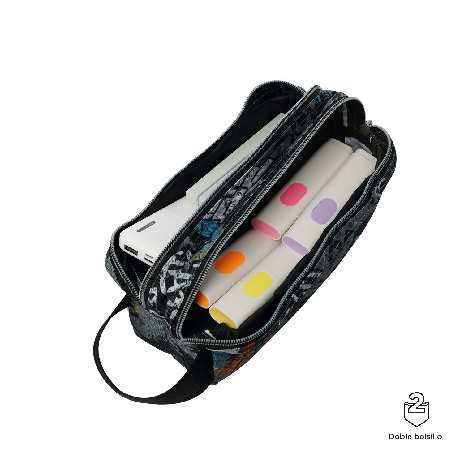 With Totto, school is more fun! This case is practical, durable, and liquid-repellent. Made of sturdy canvas, it features two zippered compartments, metal sliders with plastic coating, a side woven handle, and an embroidered logo.