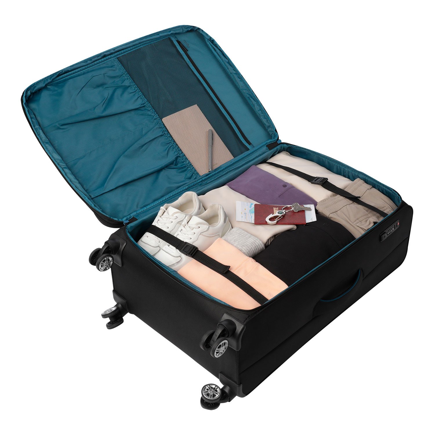 Travel in comfort with the 360 Liviana Collection Suitcase! Made of durable polyester, it features quick access pockets, double 360° wheels, a telescopic handle, and a TSA lock. Interior dividers and mesh pockets keep you organized. Check airline size limits and travel worry-free!