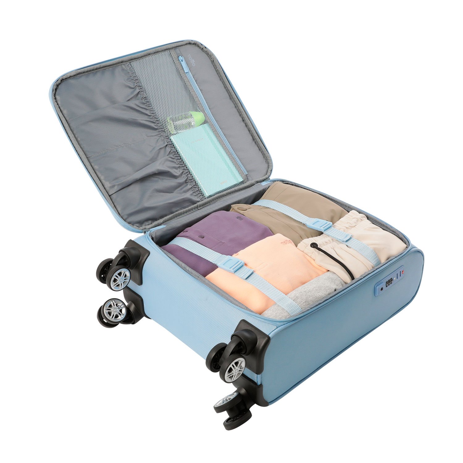 Travel in comfort with the 360 Liviana Collection Suitcase! Made of durable polyester, it features quick access pockets, double 360° wheels, a telescopic handle, and a TSA lock. Interior dividers and mesh pockets keep you organized. Check airline size limits and travel worry-free!