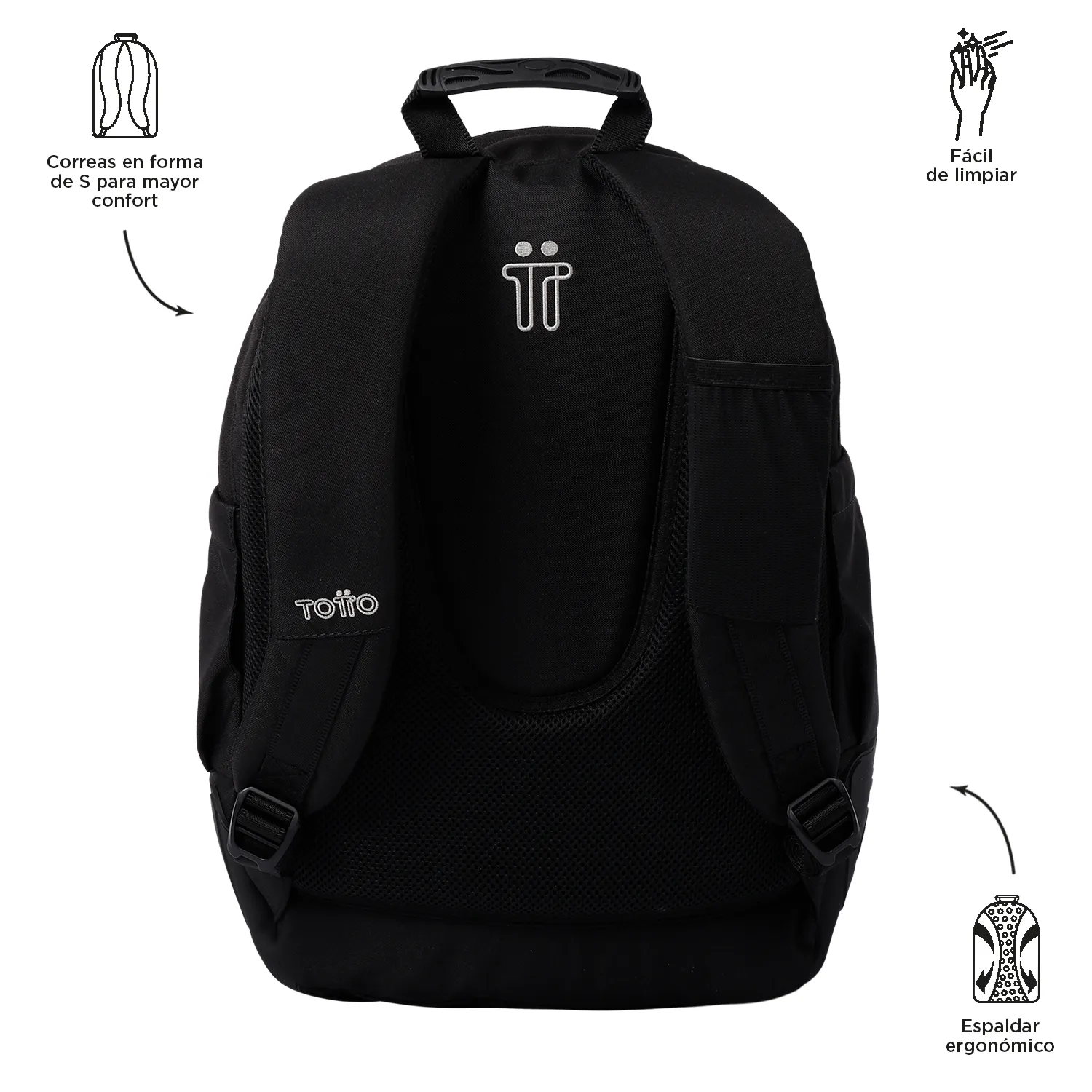 Choose functionality and sustainability! This student backpack features a 14-inch laptop compartment and a 20-liter capacity. Made from RPET canvas using 10 recycled plastic bottles, it includes an internal organizer with key holder, side pockets for a water bottle and umbrella, PVC protective base supports, and quick-access front pockets. Ergonomic shoulder straps with Air Mesh provide maximum comfort.