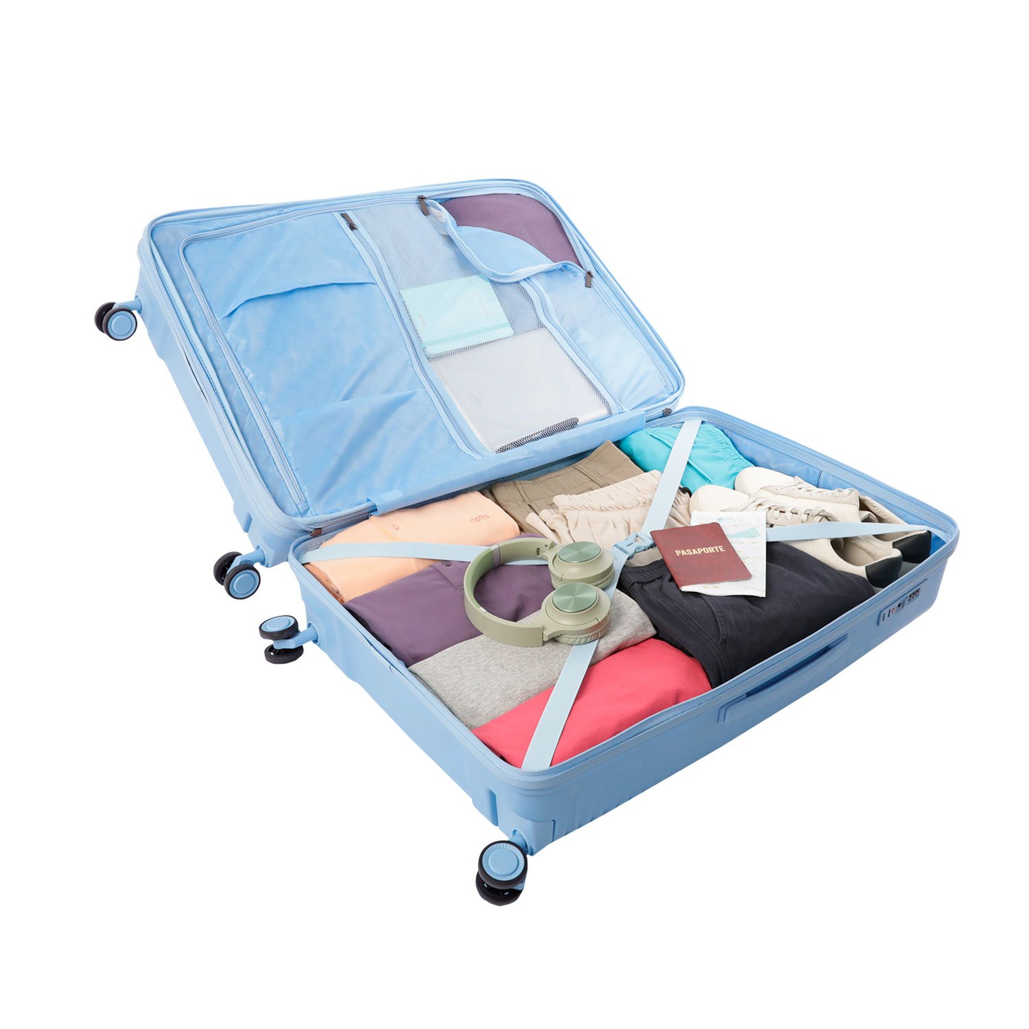 The Traveler Collection Suitcases is crafted with an impact-resistant polycarbonate shell and features an exclusive design that combines matte and glossy finishes. Internal compression straps to maximize space, and TSA-approved security for worry-free travel. Equipped with 360° double spinner wheels (8 in total), it ensures smooth and stable mobility. Carry everything you need—comfortably and in style