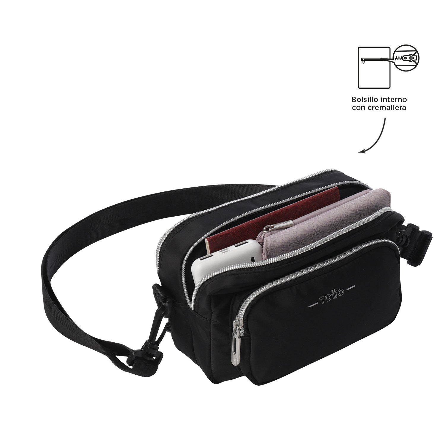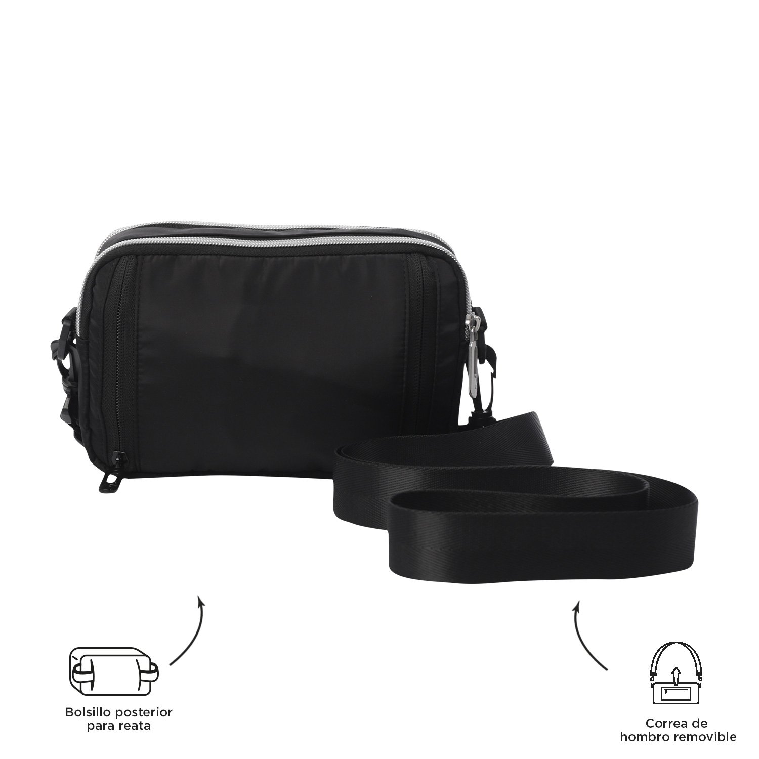 The Crossbody Bag Funty is the ideal choice for versatile women! This small and functional bag, in a satin finish, can be carried on the shoulder or kangaroo style, thanks to its adjustable and removable strap. Multiple compartments allow you to organize your belongings with ease, while metallic-finish zippers add a unique touch to your look. Make it yours now and enjoy its 2-in-1 practicality!